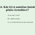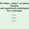 Do záznamových listů napište české rodové a druhové jméno ptáka a odpovězte na otázky.